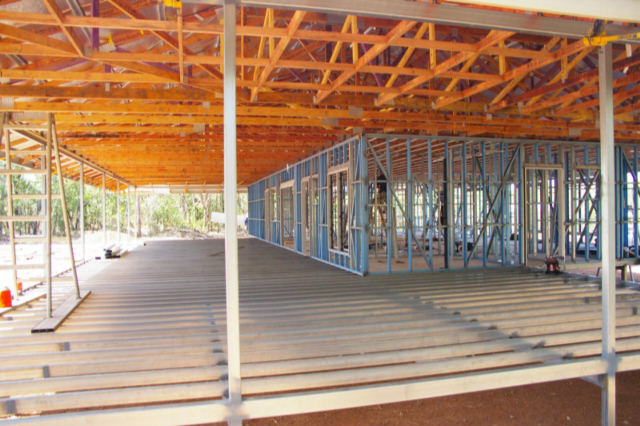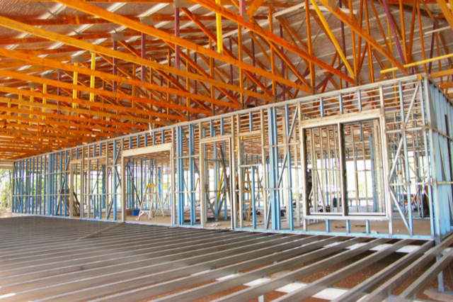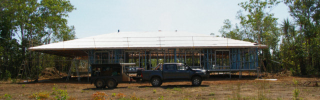 The roof is going on with blinding speed. Once the house is rain-sheltered, they can start fit-out.