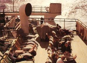 After breakfast Dan and Olga kiss and Olga says. "I will see you at the party later tonight Darlink." Dan smiles. "It will be a pleasure. I think I may sit outside and take in the sun for awhile. I'll see you later." They both leave the cabin and Dan goes out onto the deck. Dan finds the English couple sitting in deckchairs in the sun. The lady seems to be still covered in furs even there. "I say, pull up a chair and sit with us old boy." Dan nods and finds a chair and lights up a smoke.