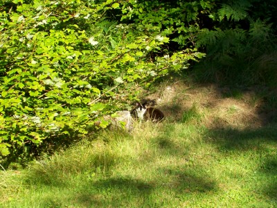 Tuesday night, Lake and I were eating on our patio, when suddenly, he said, "Hey what's that???" There was something watching us from the side of the lawn! I got up to get a closer look, but he ran away as soon as he saw me move...
