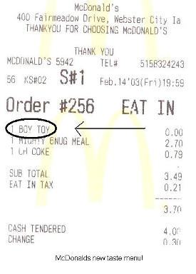 I would hate a McDonald's sex stop -- they have to measure out their ingredients as it is, what would it be like? "Ok, one oz lube, one condom, 5 thrusts... ummm what comes next? hang on let me look at the recipe.."