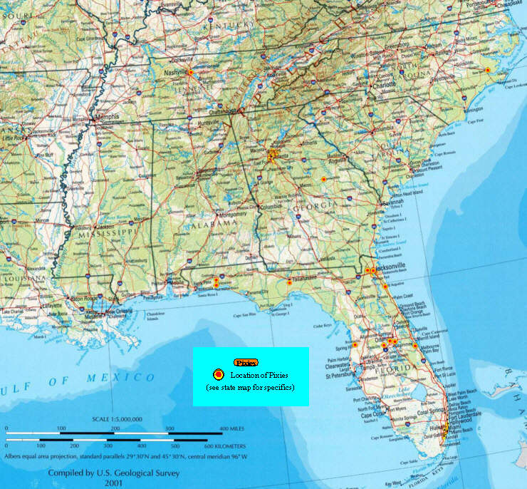 It appears this will have grave effects on more than one state. I am posting a map of the southeastern US with pixie location. While we know of members in the area that are not shown, this is current as of this posting. This area has 4 states with members that will be immediately effected. We look for the reports from those that have asked to be shown, but also hope to hear from the others we know are likely to be visited by Ivan.