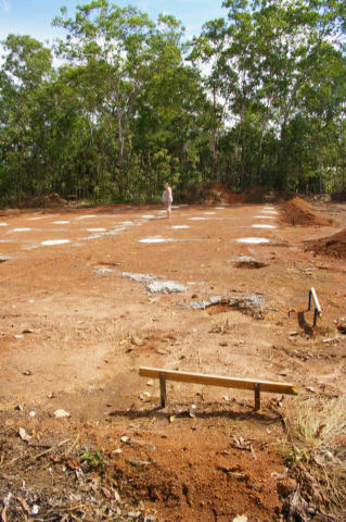The cleared area has had some steel cored concrete pads laid.