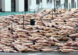 Last year, the 35-year-old installation artist photographed 2,500 people lying naked in the Place des Arts in Montreal. Despite the large crowd, Tunick managed to shoot three distinct scenes in less than 40 minutes.
